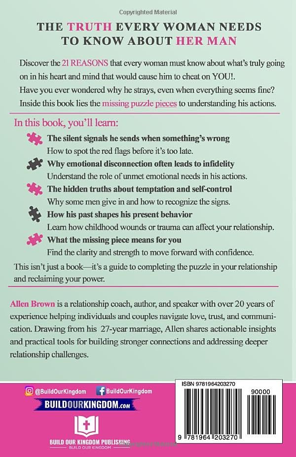 Drawing from real-life experiences, biblical wisdom, and years of counseling, this book breaks down the emotional, psychological, and situational factors that push men toward unfaithfulness. Many women believe that being a good partner is enough to prevent cheating in marriage, but the truth is, understanding men’s behavior is key to keeping his faithfulness and commitment.