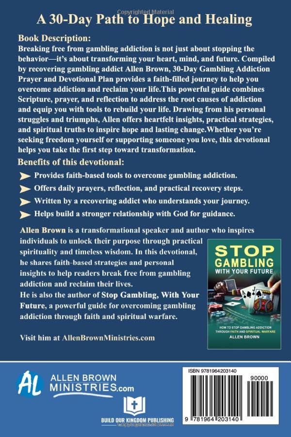 This devotional also introduces Allen’s companion book, Stop Gambling, Your Future Awaits, which dives deeper into his journey and offers additional strategies for victory over addiction. Together, these resources provide a comprehensive roadmap for recovery and hope.