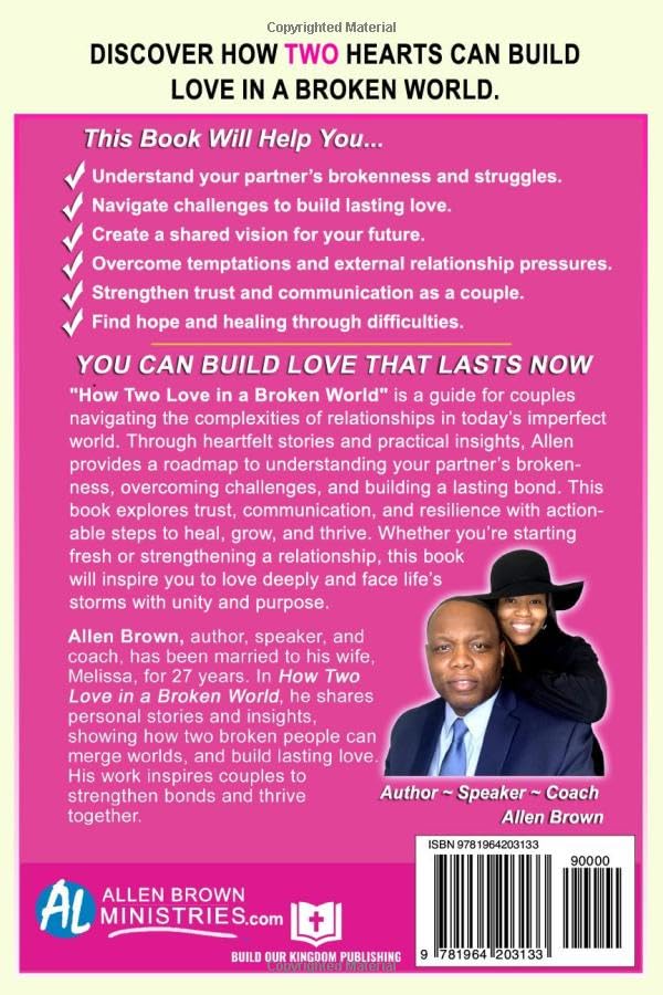 How Two Love in a Broken World is more than a book—it’s a roadmap to a relationship filled with love, hope, and grace. Together, you can conquer the brokenness of the world and create a partnership that reflects God’s beautiful design for love.