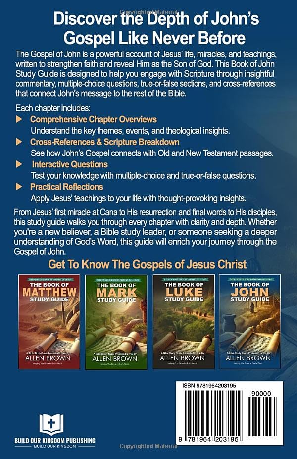 Each lesson is crafted to help believers not only understand John’s powerful testimony of Jesus but also apply its truth to their daily lives. As readers engage with each chapter, they will see Jesus’ love, miracles, and sacrifice come to life in a way that strengthens their faith and encourages them to walk boldly in His truth.