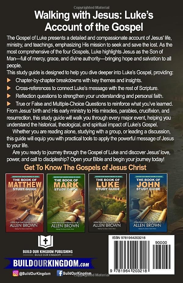 As you journey through the Book of Luke with this study guide, you are invited to embrace a deeper relationship with Christ, gain wisdom from His words, and live out the principles of His kingdom.
